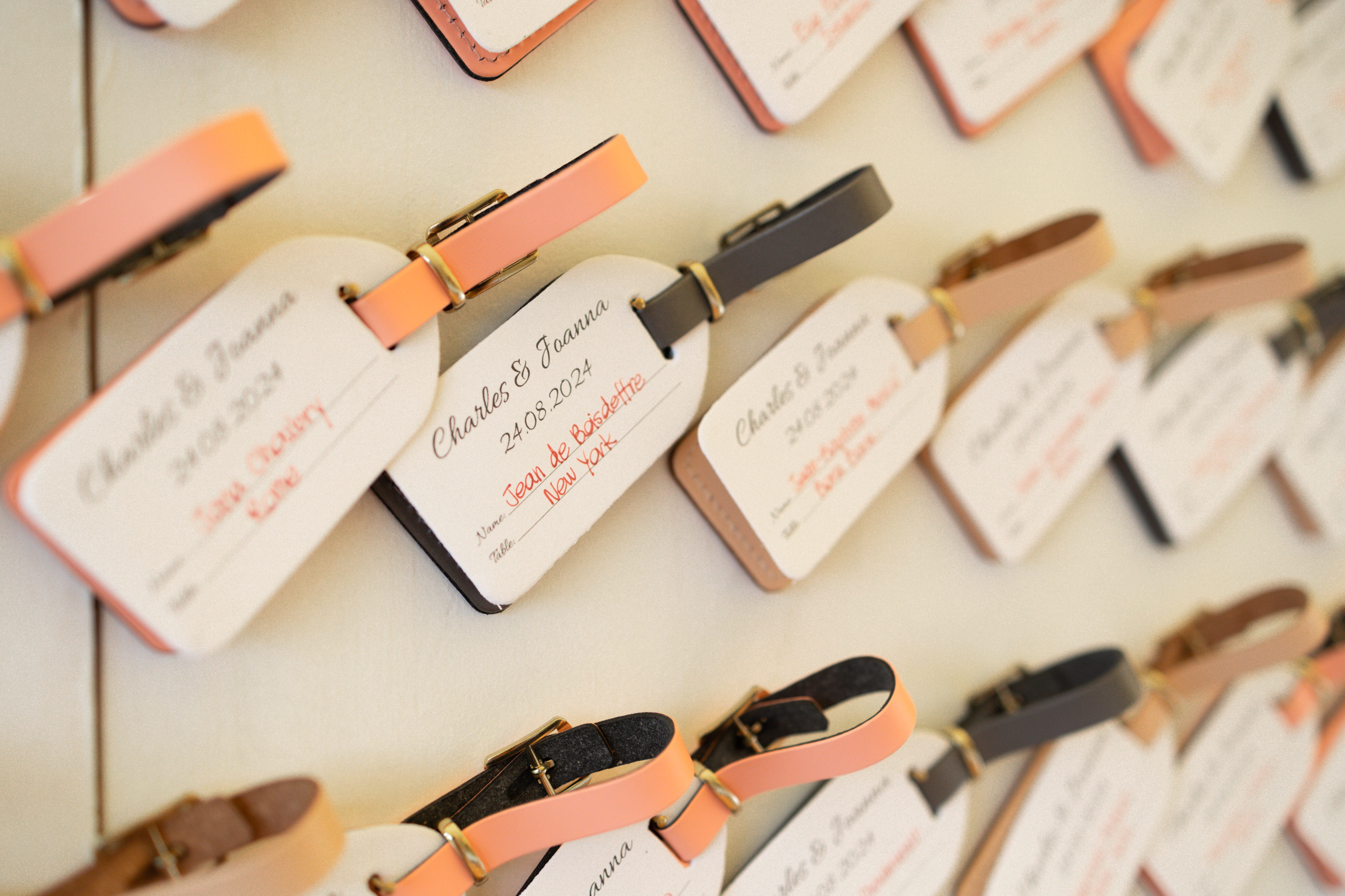 Organisation complète et décoration de mariage en Juin pour un couple originaire du Mans et habitant au Canada, clins d'œil à leur histoire avec des teintes douces et colorées.