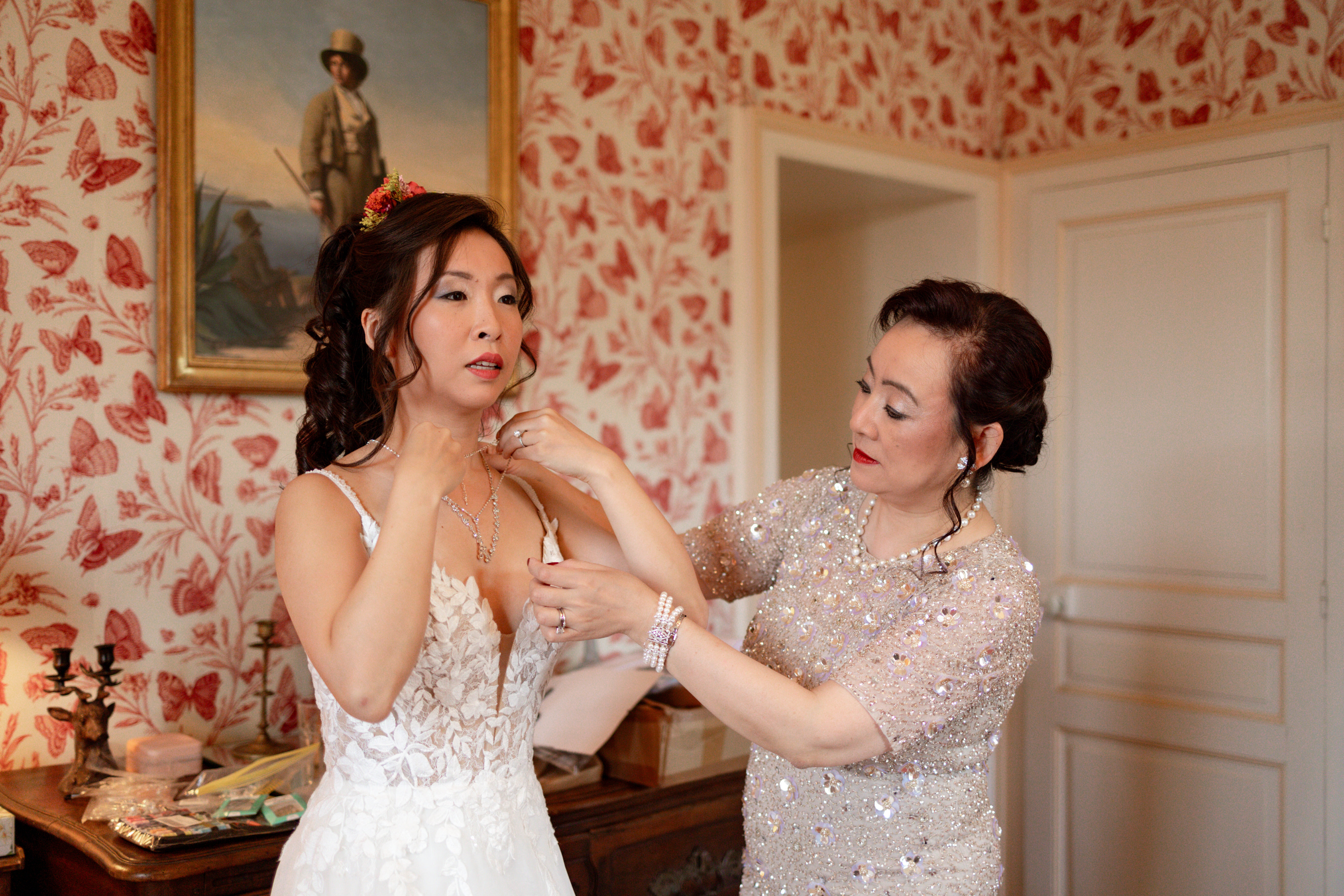 Coordination jour J d’un mariage de fin d'hiver pour un couple international venu de Chine, réunissant des invités des quatre coins du monde.