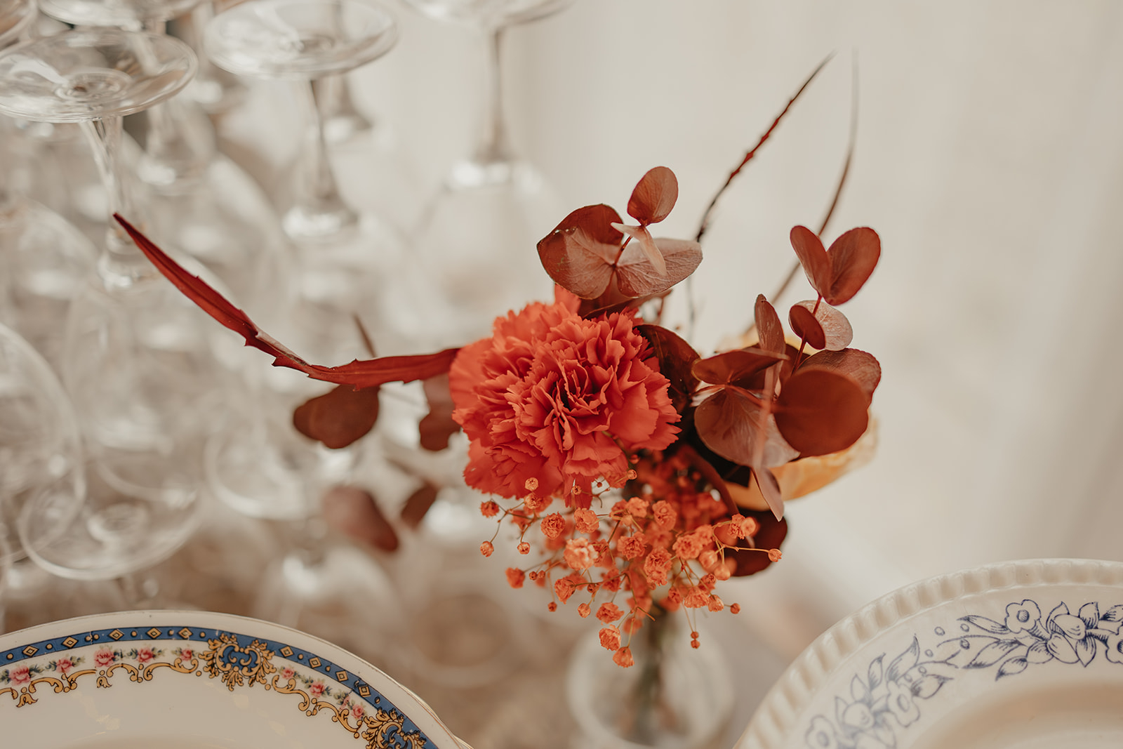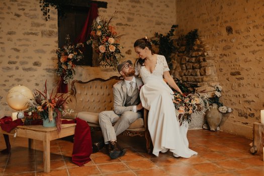 Organisation complète et décoration d'un mariage d'Automne avec touches terracotta, convivialité et nostalgie.