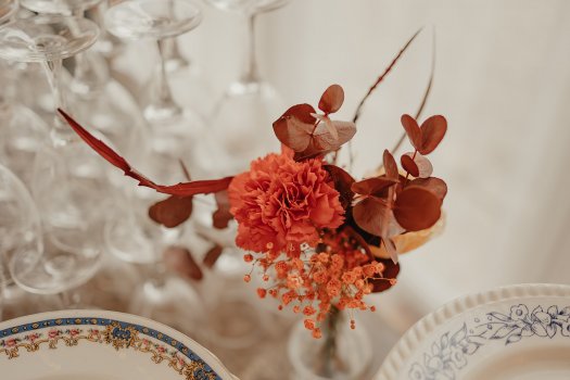 Organisation et décoration d'un mariage fin septembre dans une démarche écoresponsable avec des couleurs d'automne et des plantes aromatiques.